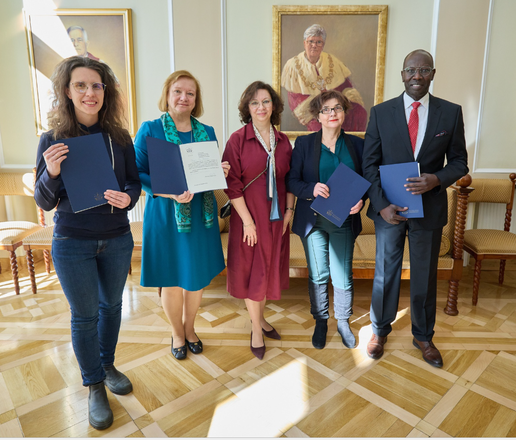 Wśród wyróżnionych znaleźli się również pracownicy Wydziału Kultur Azji i Afryki Uniwersytetu Warszawskiego, którzy odebrali dyplomy z rąk prof. Alojzego Z. Nowaka, JM Rektora UW: prof. zw. dr hab. Danuta Stasik, prof. zw. dr hab. Joanna Jurewicz, dr Nagmeldin Karamalla-Gaiballa oraz nasza wykładowczyni, dr Agata Szepe-Vratolis.